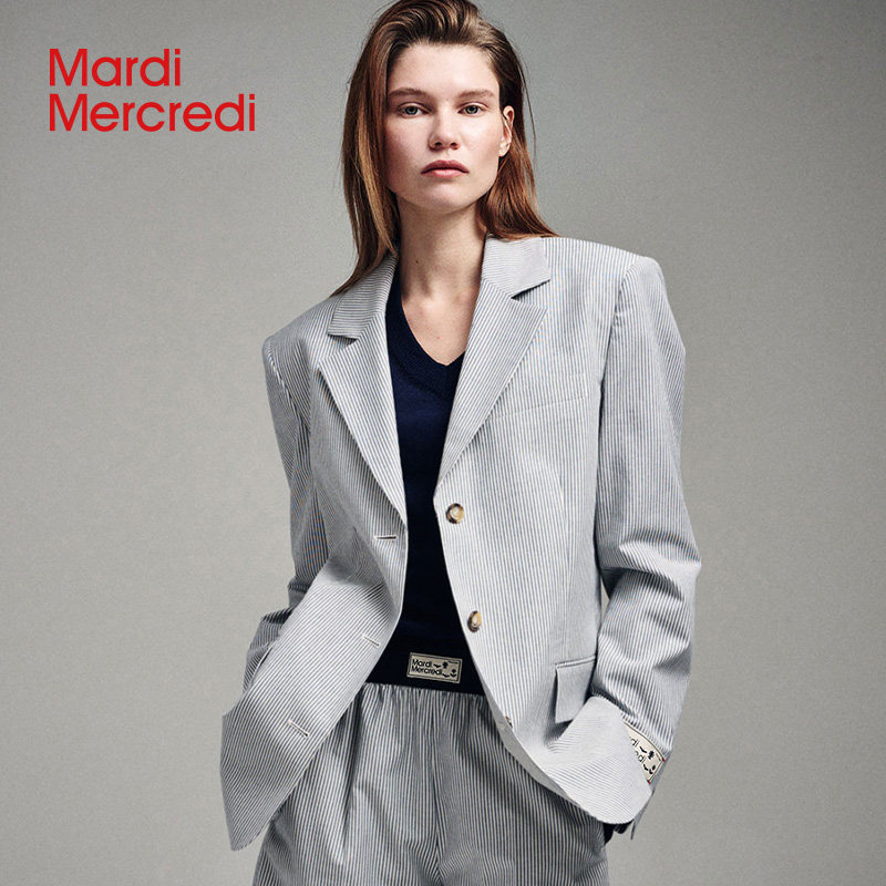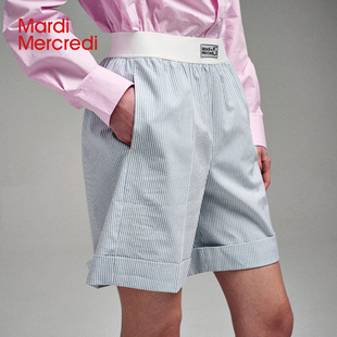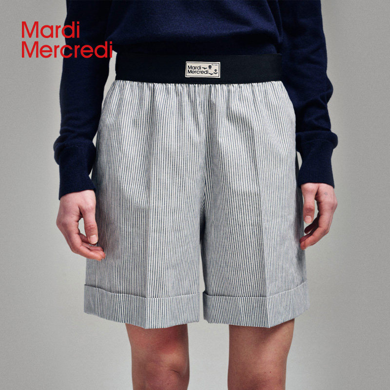 男女同款 松紧腰休闲通勤韩系五分中裤 短裤 MardiMercredi条纹西装