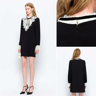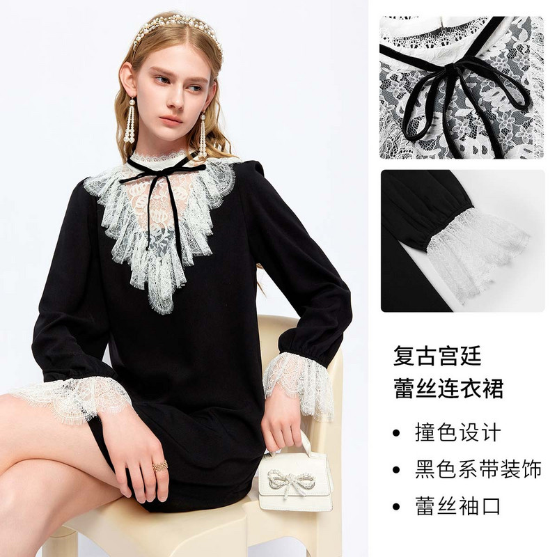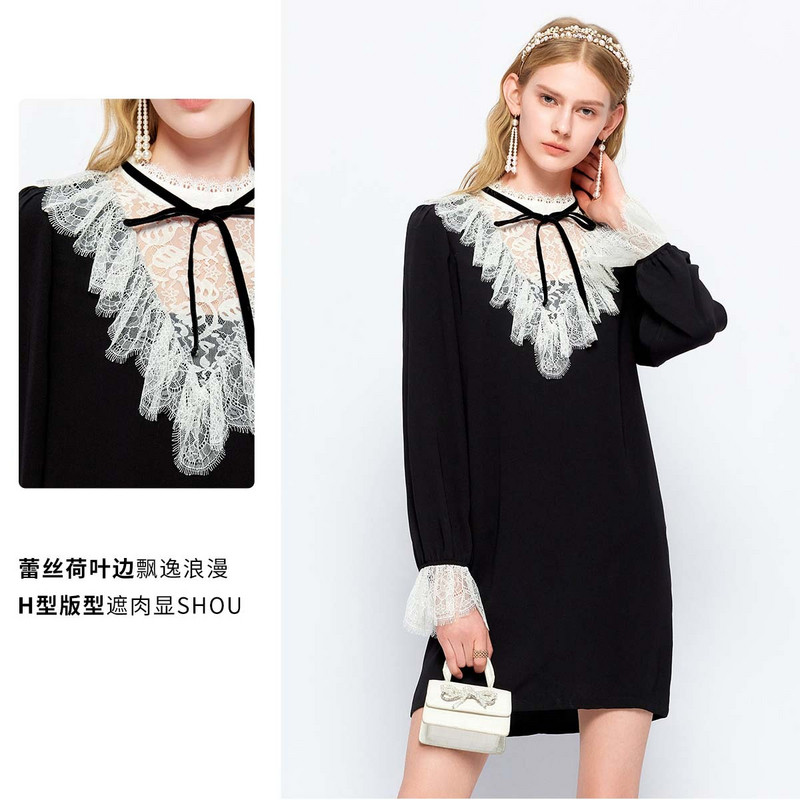 MISSCOCOON宫廷蕾丝拼接荷叶边泡泡袖 连衣裙秋款