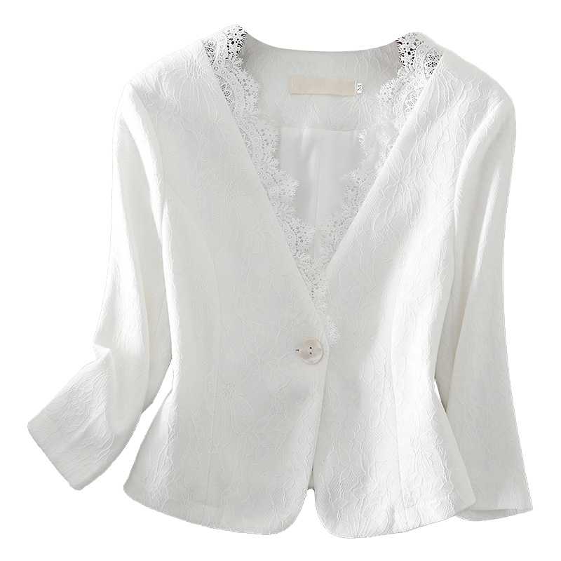 短款 春秋季 蕾丝提花小西装 高端气质优雅女装 花边小外套配裙子 新款