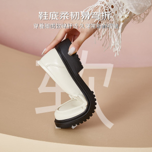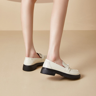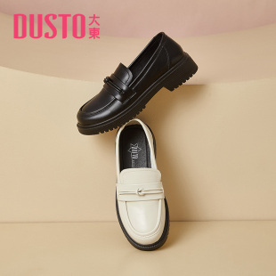 小皮鞋 圆头鞋 女2026春季 简约风中跟粗跟厚底乐福鞋 新款 大东时尚