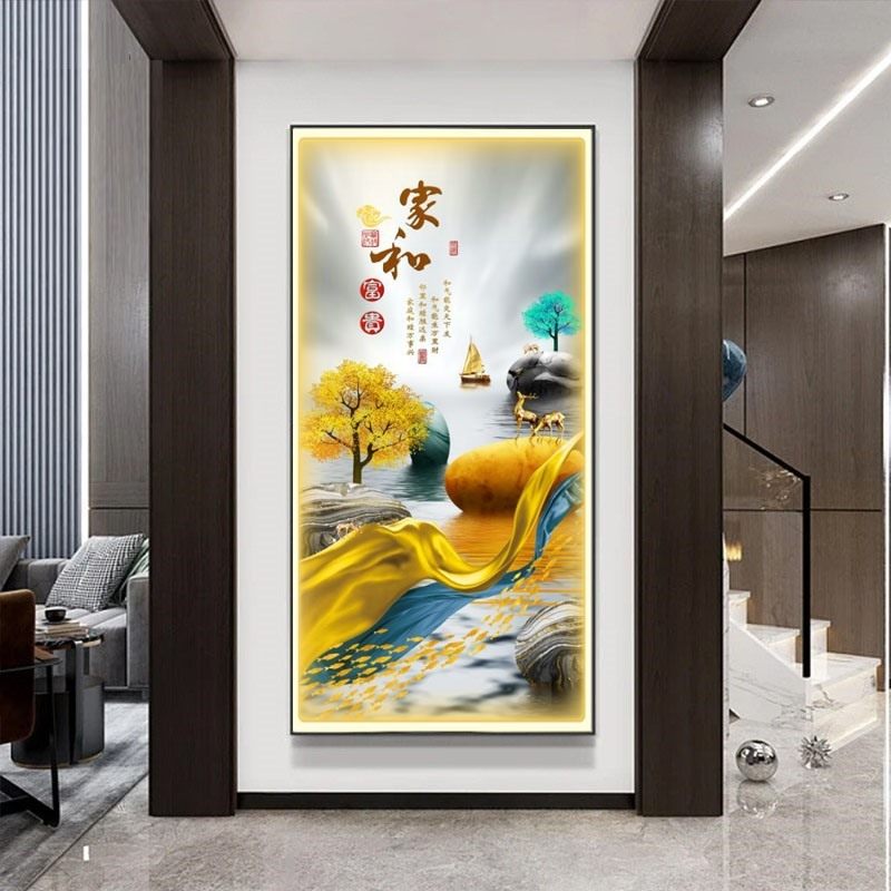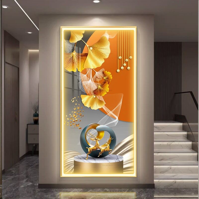 入户玄关装 山水墙画客厅走廊过道挂画智能语音发光壁画 饰画新中式