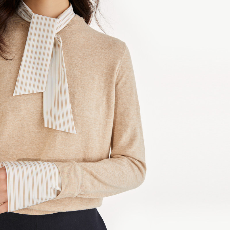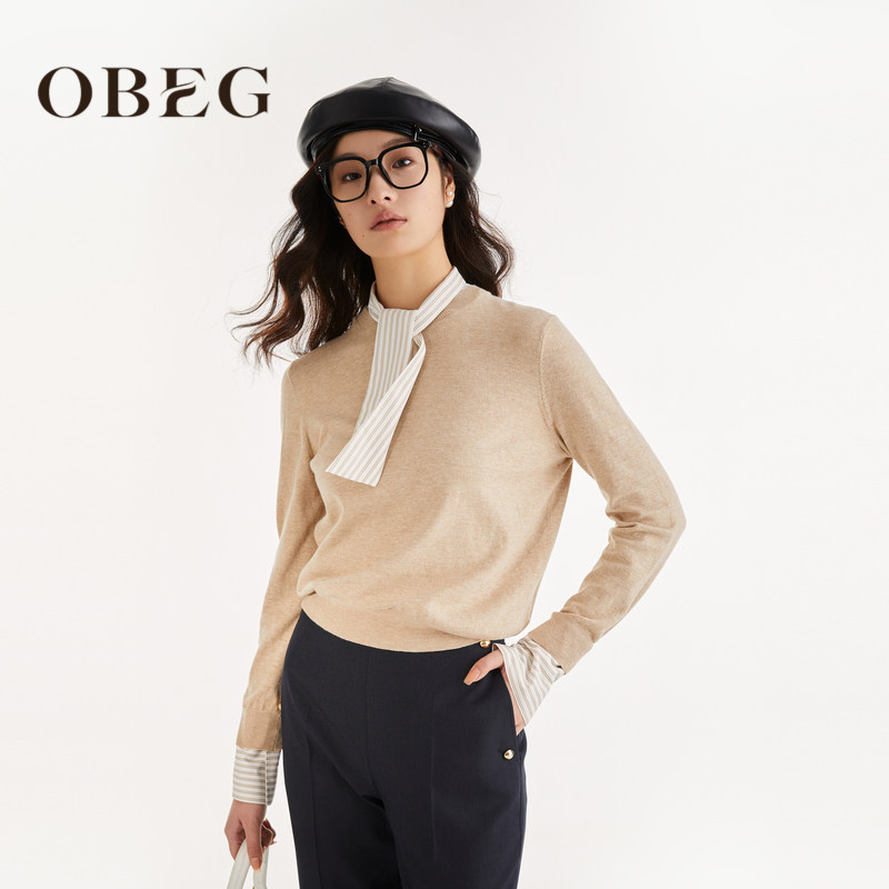 设计感小众上衣50463526 23秋季 OBEG欧碧倩假两件式 拼接针织衫