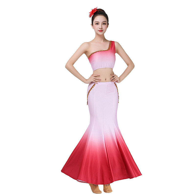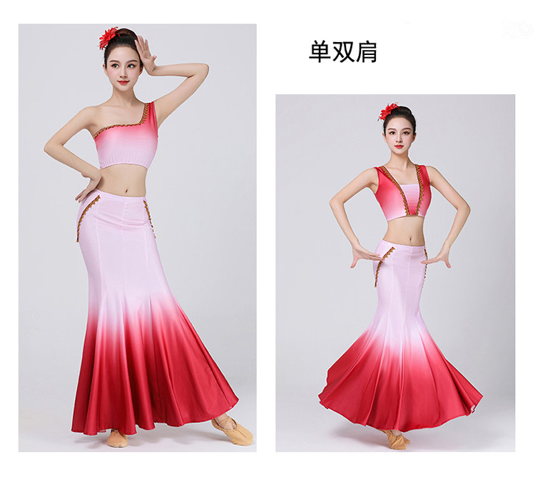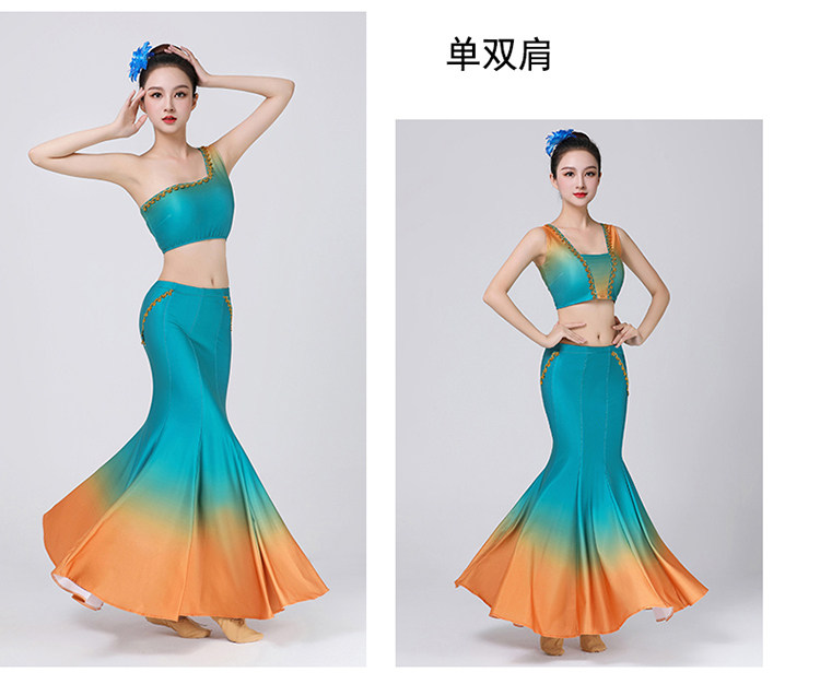 傣族演出服女鱼尾半身裙孔雀舞练功裙艺考舞蹈裙练习裙子表演服装