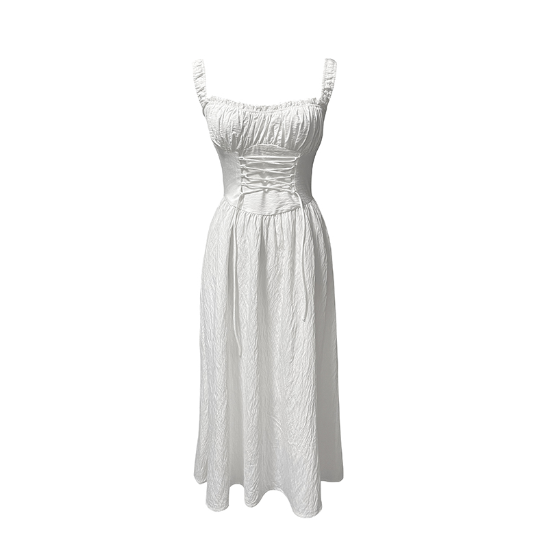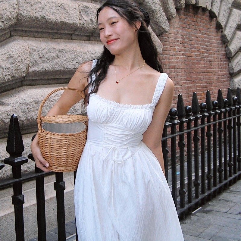 ooh 吊带裙中长裙 itch痒痒「朱莉系列」白色连衣裙纯欲复古法式