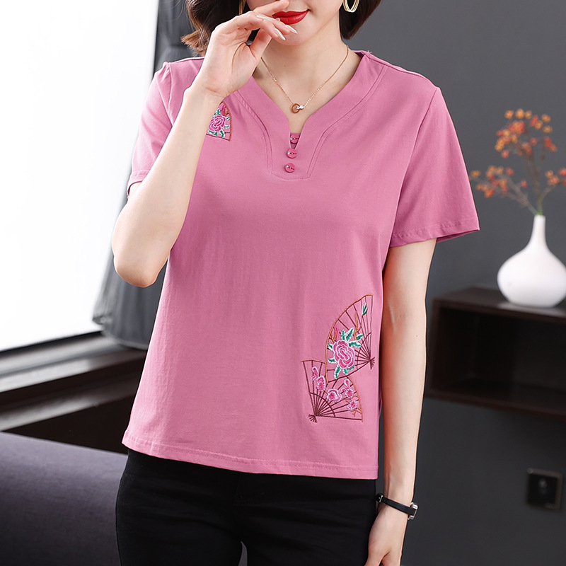 短袖 中年女装 T恤女夏季 外穿宽松洋气大码 休闲上衣 2025新款 妈妈装