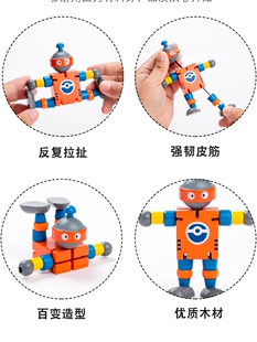 儿童木质变形机器人百变木制积木智力动脑拼装 益智玩具早教创意