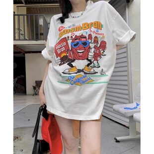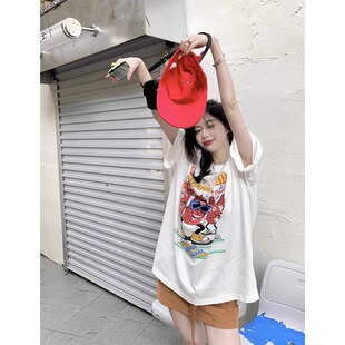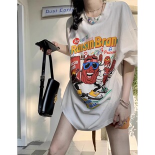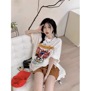 设计感小众宽松上衣 夏季 100%纯棉白色卡通涂鸦短袖 t恤女2025新款