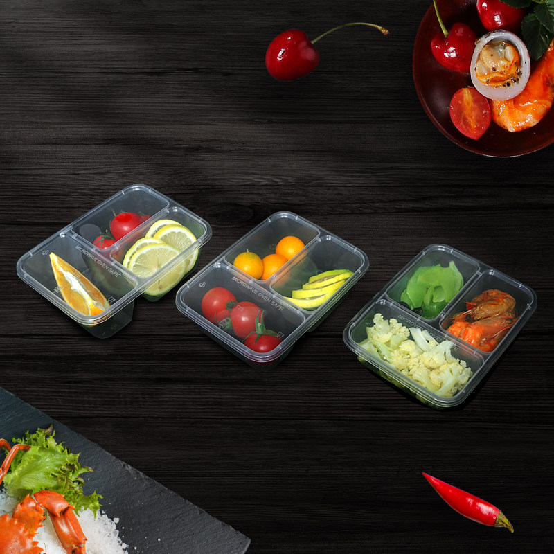 一次性餐盒圆形打包盒长方形饭盒加厚食品级塑料碗外卖盒家用带盖