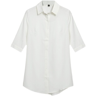 白衬衣女长款 短袖 性感白色衬衫 女士外穿薄款 上衣潮 秋季 男友风夏季