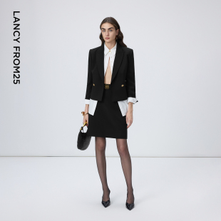 a字裙气质黑色半身裙通勤百搭新款 朗姿25复古法式 裙 Basic衣橱