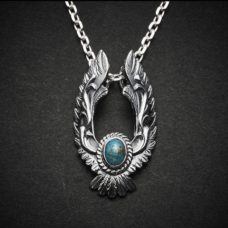 NAVAJO吊坠 日本制美国天然松石雄鹰展翅925纯银 Dear Blossom