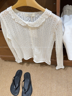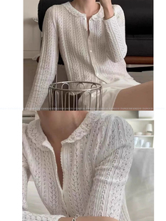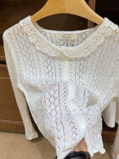 防晒衫 韩国oun 镂空针织开衫 长袖 女 甜美减龄复古花边领