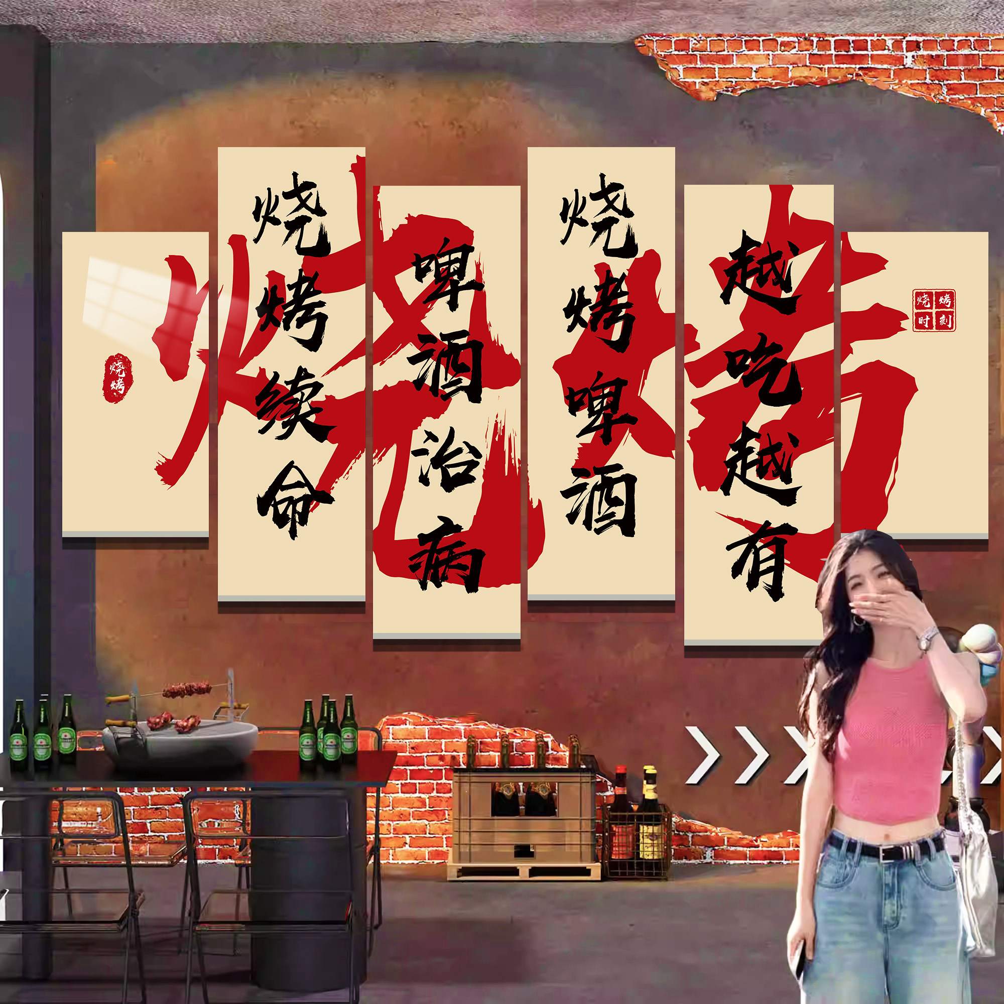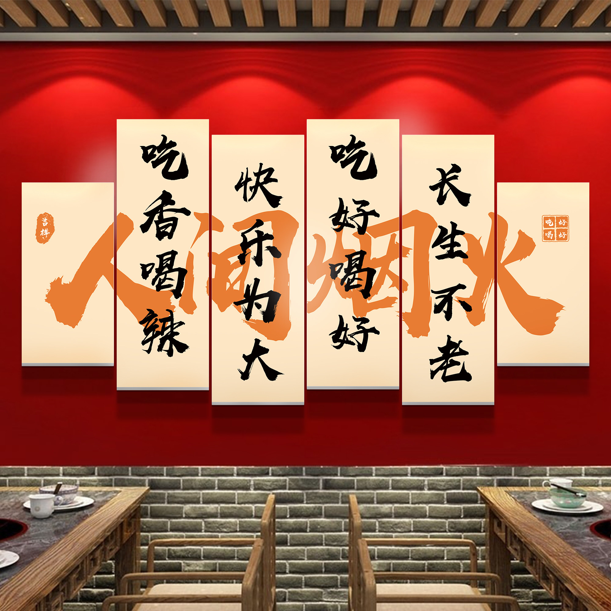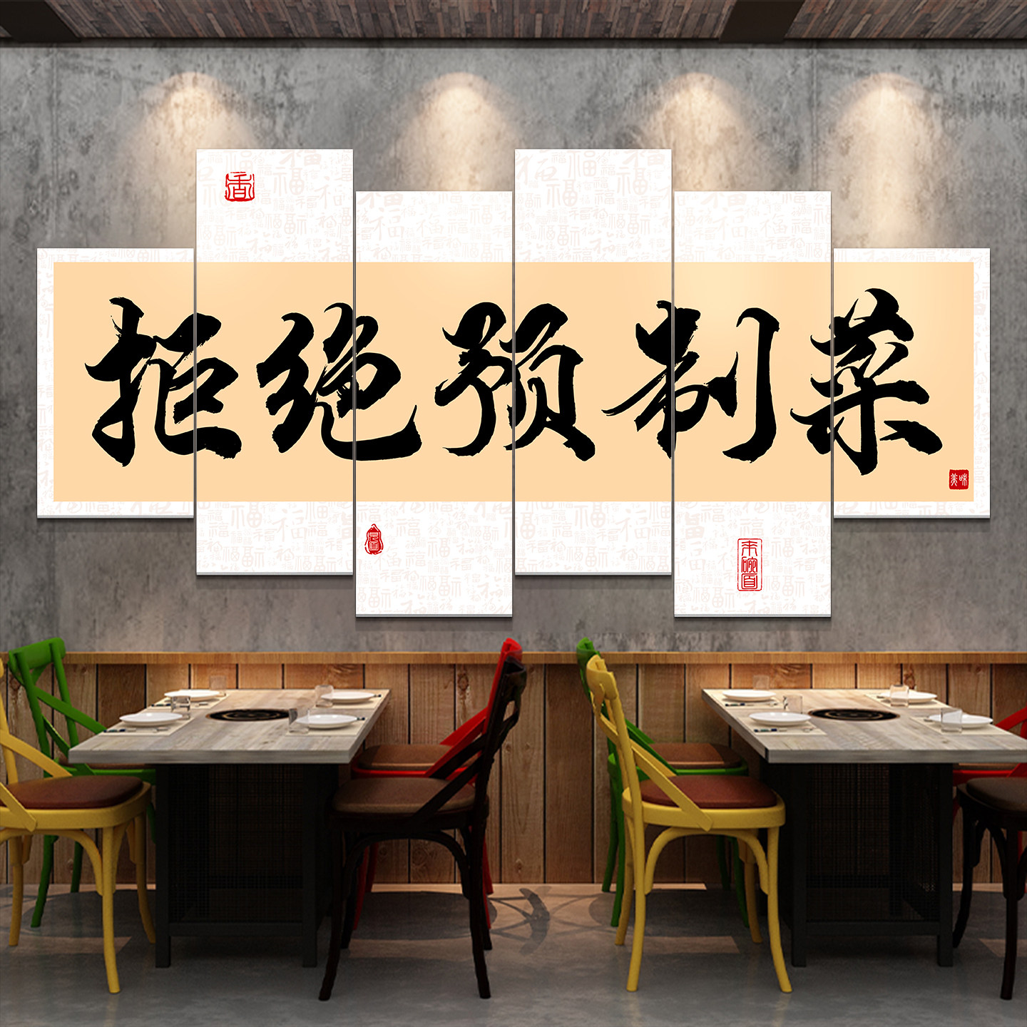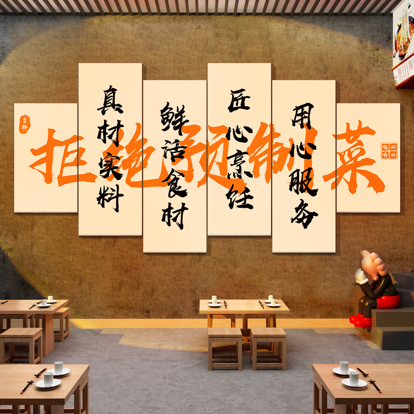 拒绝预制菜标语烧烤肉湘菜餐饮店氛围布置墙面装 饰网红背景墙贴纸