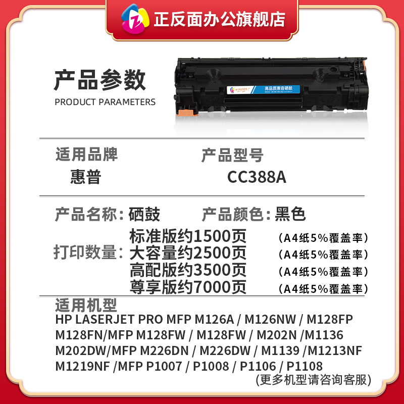 1007 128fn p1108 88a硒鼓m1213nf惠普cc388a硒鼓易加粉打印机墨盒MFP HP1106 适用惠普m1136硒鼓m126a