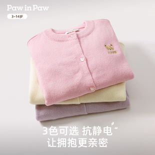 女童开衫 抗菌 25年新款 PawinPaw小熊童装 毛衣 100%羊毛可机洗