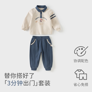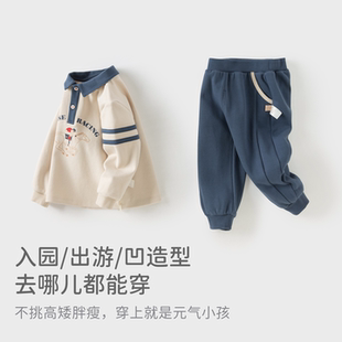 子宝宝早春衣服 儿童学院风上衣裤 戴维贝拉男童运动套装 2026新款