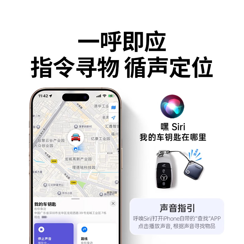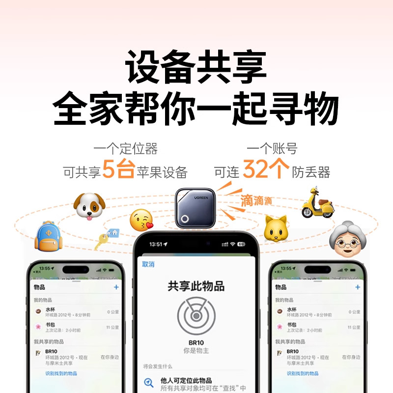 绿联定位器防丢器神器适用苹果迷你宠物老人儿童跟踪电动车钱包旅行箱书包airtag平替防丢失自行车汽车钥匙扣