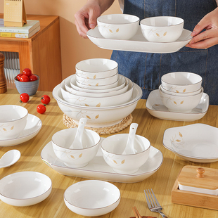 家有儿女新款 简约清新家用碗碟盘子2025乔迁新居碗盘组合 餐具套装