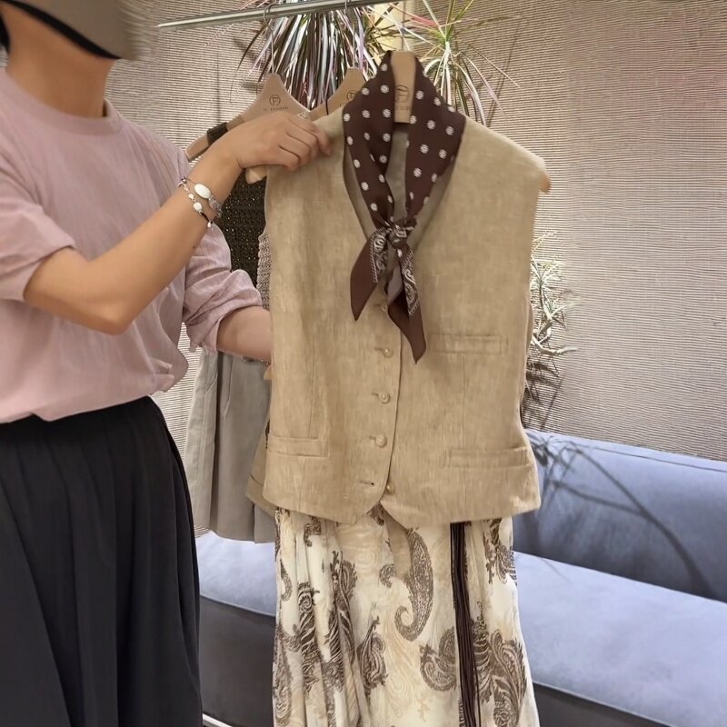 老钱气质波嘻穿搭高级设计感上衣马甲夏季 女 波西米亚风半身裙套装