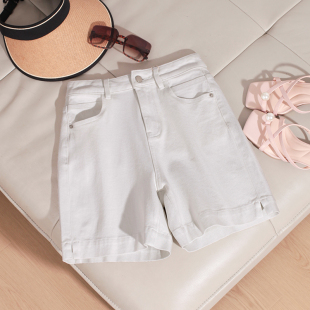 高腰微A显瘦侧开叉四分热裤 兰精天丝四面弹牛仔短裤 女春2026新款