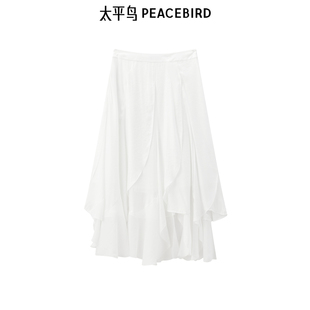胖mm重工网纱刺绣拼接蕾丝不规则蛋糕裙 大码 白色半身裙长款 女秋季