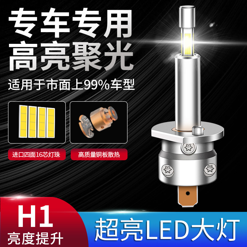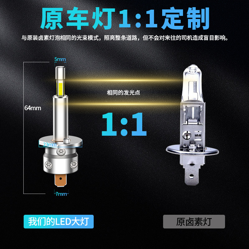 360发光汽车LED远近光大灯H1无线一体1 1尺寸超亮即插白光雾灯12V