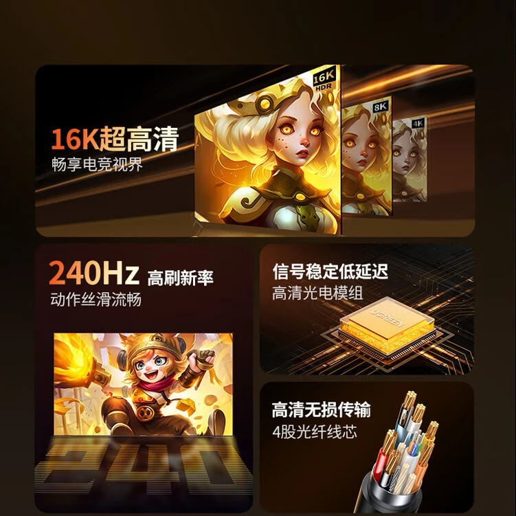 电脑接电视高清线 120Hz 魔兽DP 2.1版 144 60Hz 1.4转HDMI