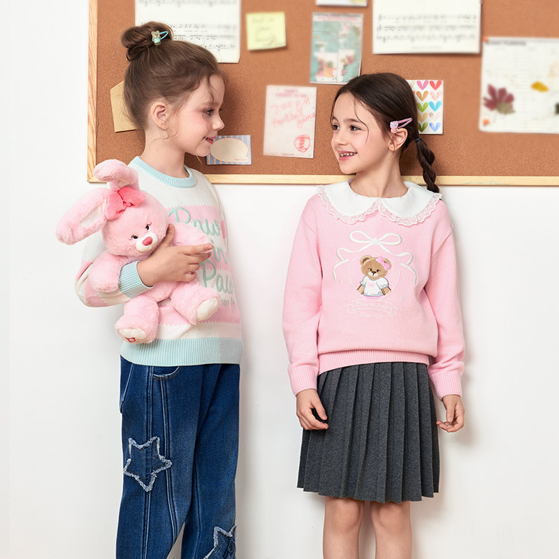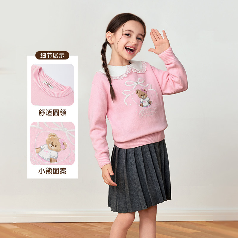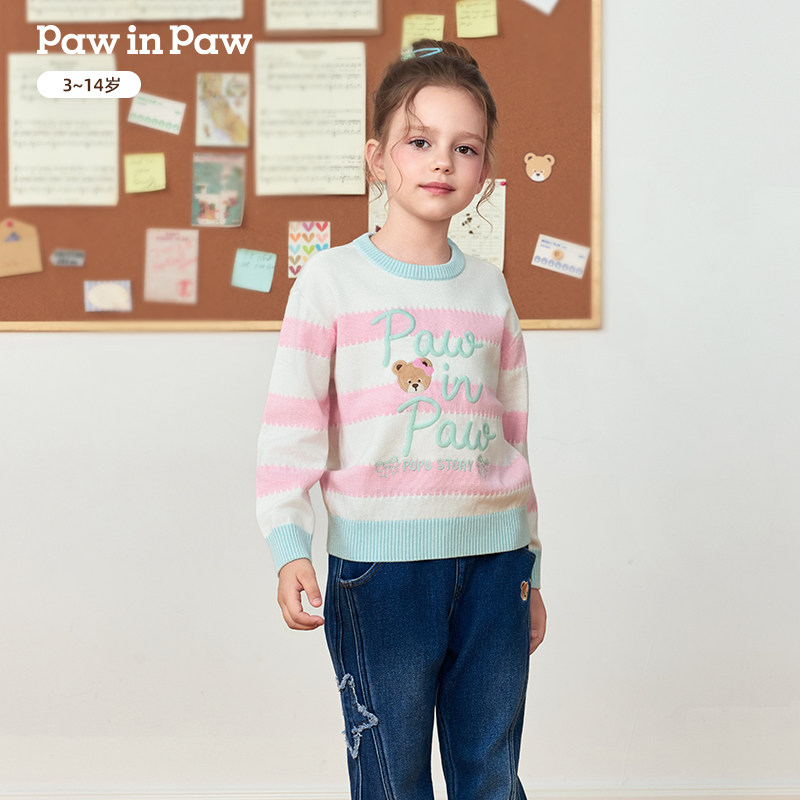 女童圆领毛衣甜美舒适软糯 新款 PawinPaw卡通小熊童装 25年秋季