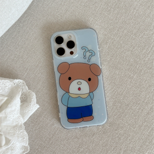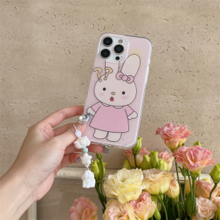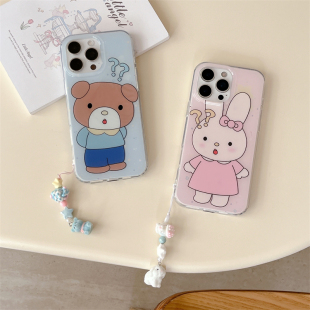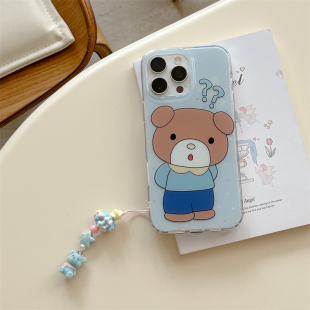 韩风ins可爱少女心情侣款 问号小熊小兔手链吊坠16promax适用iphone15pro粉蓝双层印花14手机壳苹果13硬壳防摔