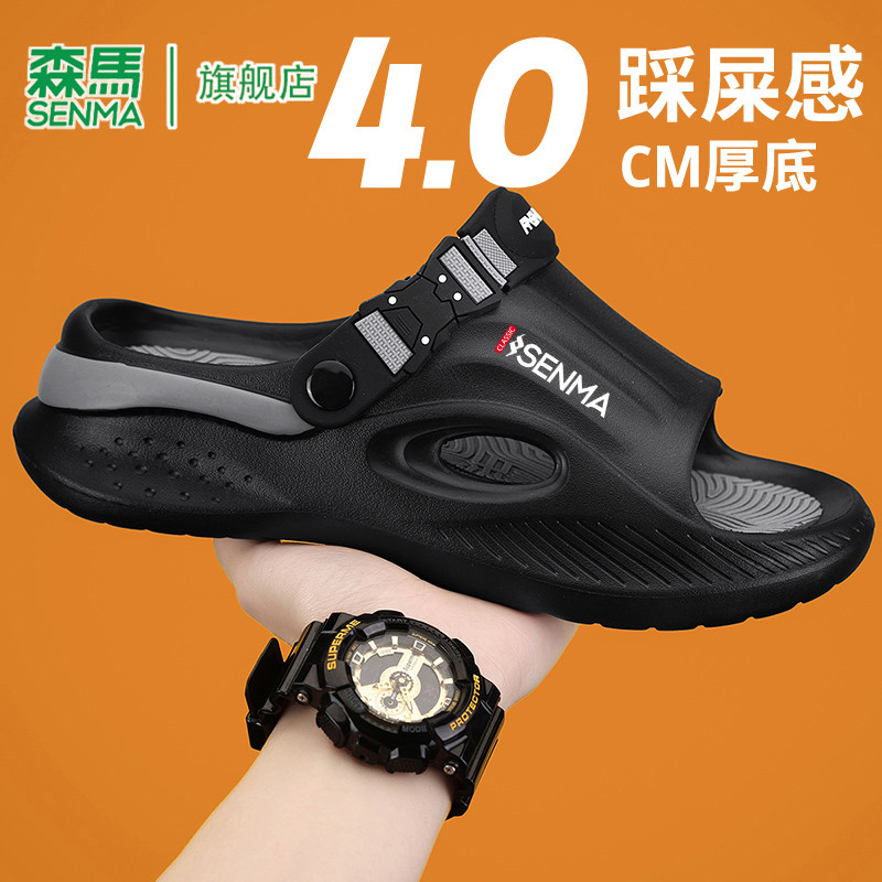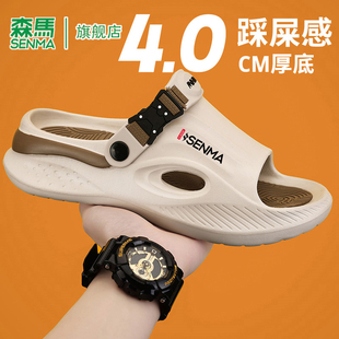 防滑耐磨沙滩凉鞋 森马一字拖鞋 新款 户外穿软底踩屎感2025夏季 男士