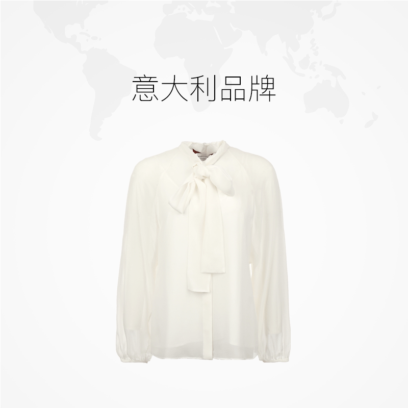 自营 雪纺衫 MaxMara女士薄款 衬衫 配吊带 桑蚕丝纯色系带长袖