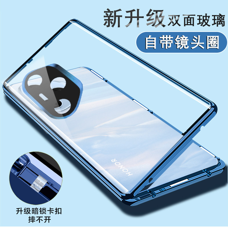 荣耀400双面玻璃保护套全包防摔HONOR卡扣磁吸por镜头膜Ultra金属边框 适用荣耀400pro手机壳新款 壳膜一体