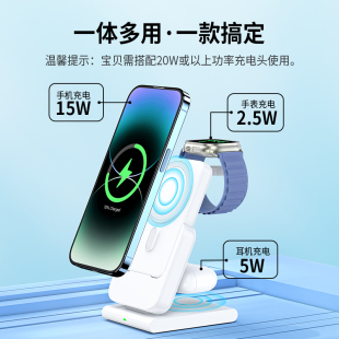 金音盾三合一无线充电器支架magsafe磁吸底座适用iphone17苹果16手机iwatch手表 充电宝3C认证可上飞机