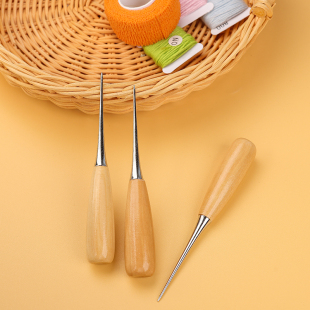 钩针补鞋 木柄锥子不锈钢尖钩针缝修鞋 工具带孔直锥 底针上鞋 纳鞋