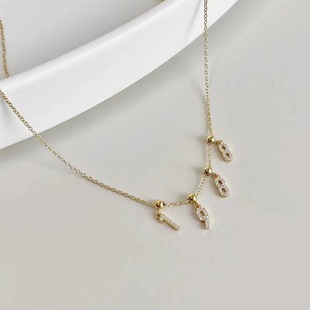 DIY热销新款 数字满钻项链金色轻奢ins简约高级百搭纯银项饰手搭配
