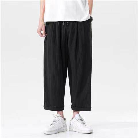 阔腿裤 子男宽松大码 子哈伦裤 潮胖子薄款 夏季 棉麻休闲裤 亚麻九分裤