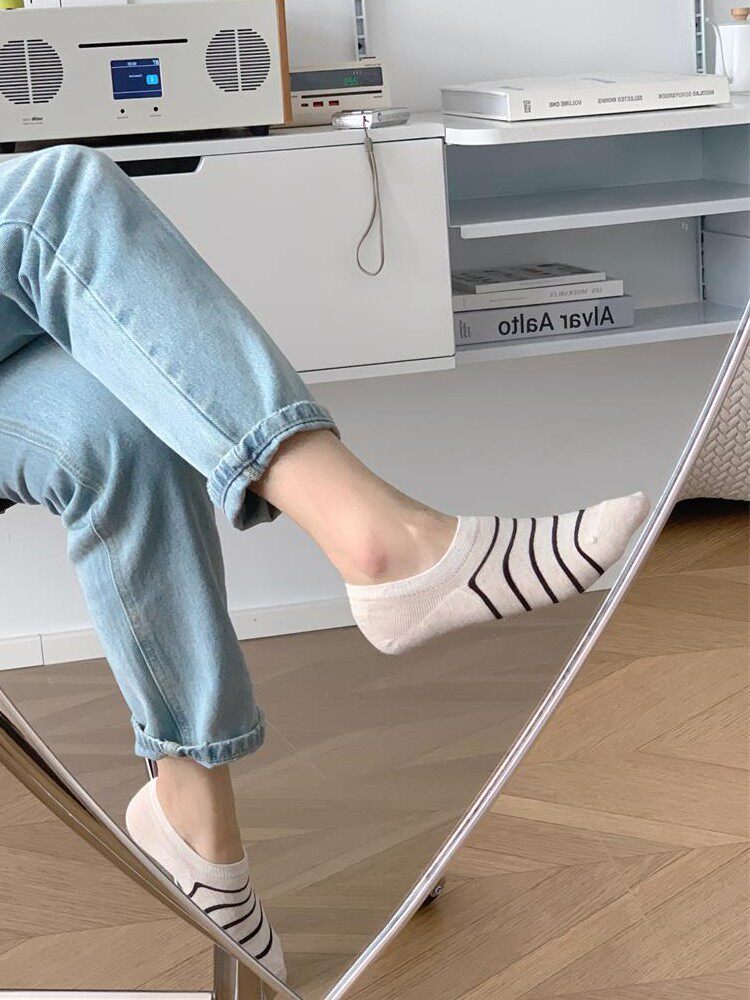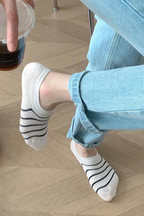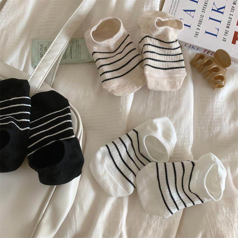 条纹船袜女夏天薄款 硅胶防滑不掉跟纯棉简约袜子女隐形学生短袜子