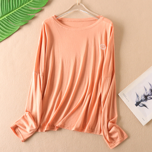C32 套头微透空调衫 柔滑绵软卡通俏皮刺绣圆领长袖 防晒T恤女薄款