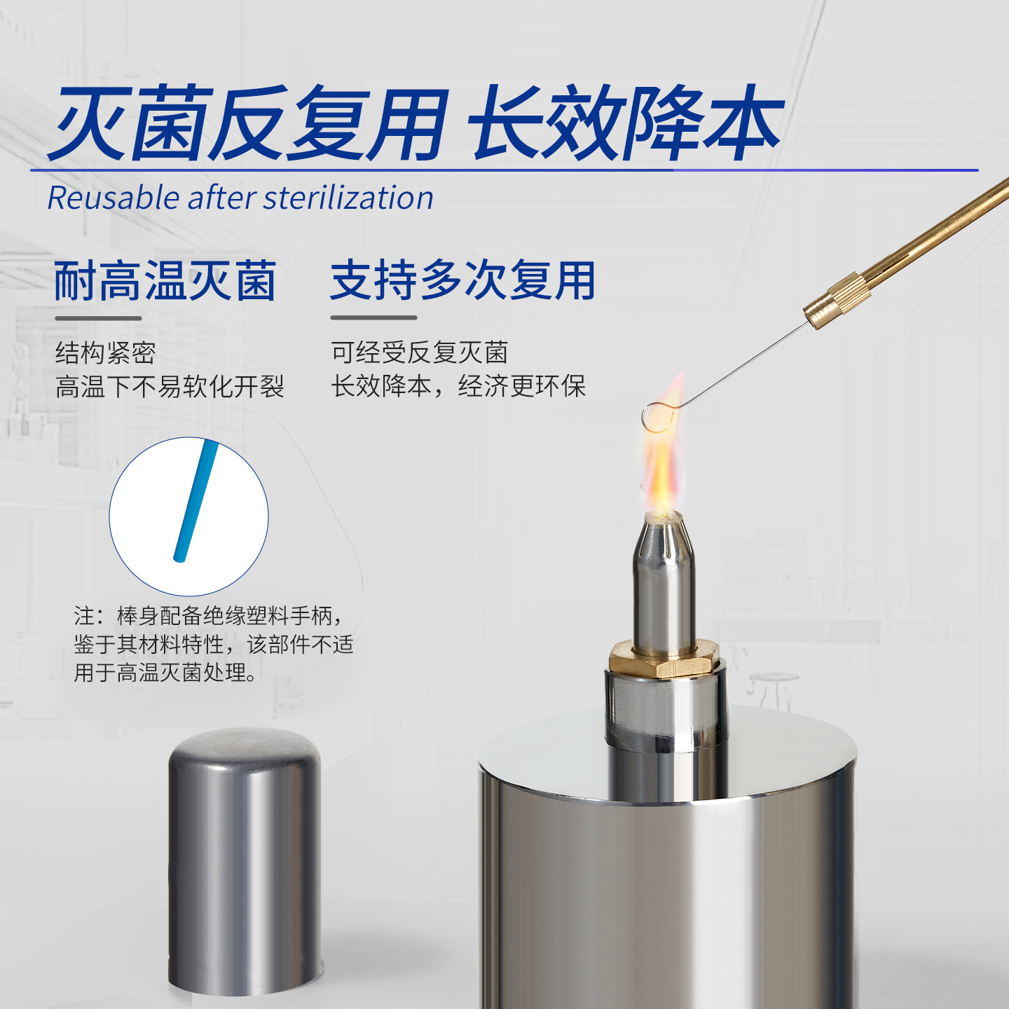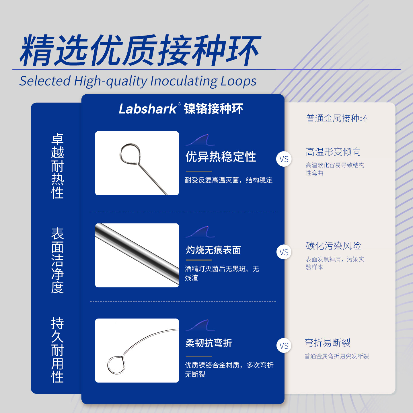 Labshark微生物金属接种环细菌接种棒涂布棒实验室用镍铬接种丝细胞塑料食用菌取菌针镀铬合金