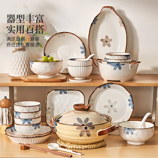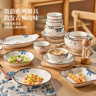 陶瓷碗盘子碗筷餐具釉下彩日式 家用2025新款 乔迁新居 碗碟套装 中式