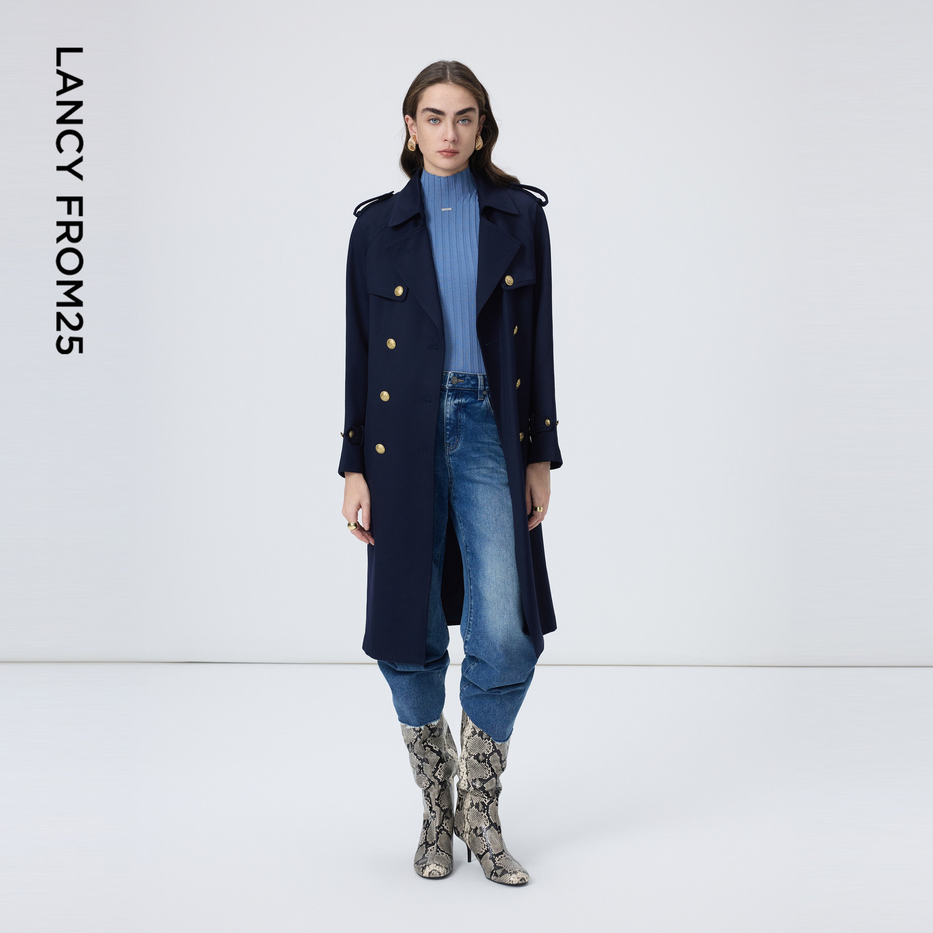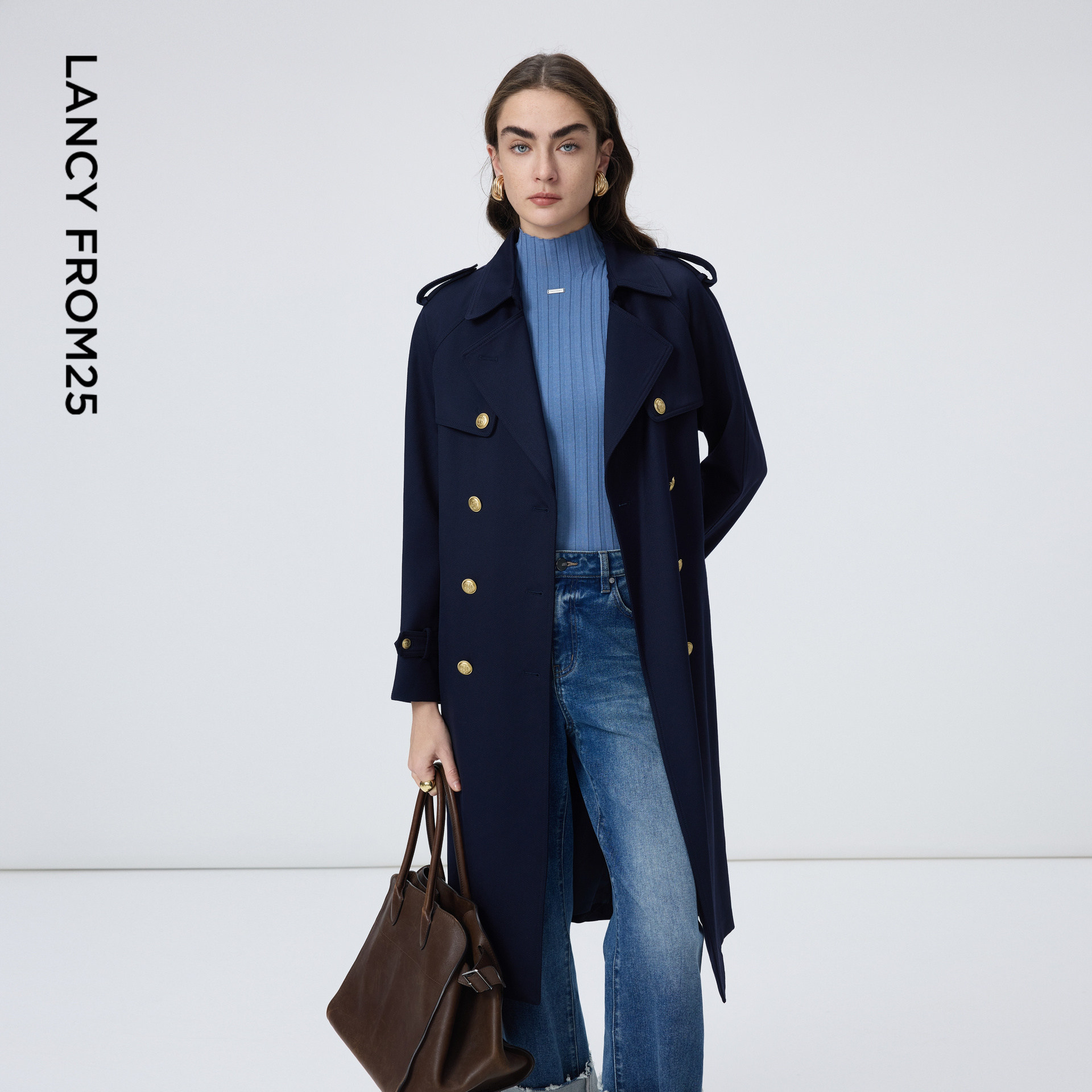 朗姿25羊毛英伦风高级感中长款 气质正肩风衣大衣外套商务风春季