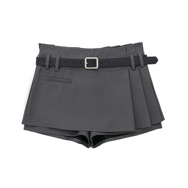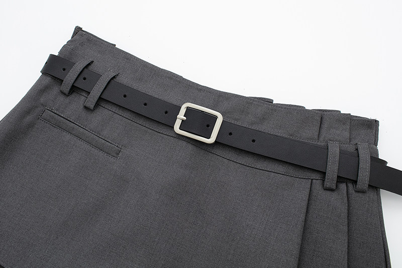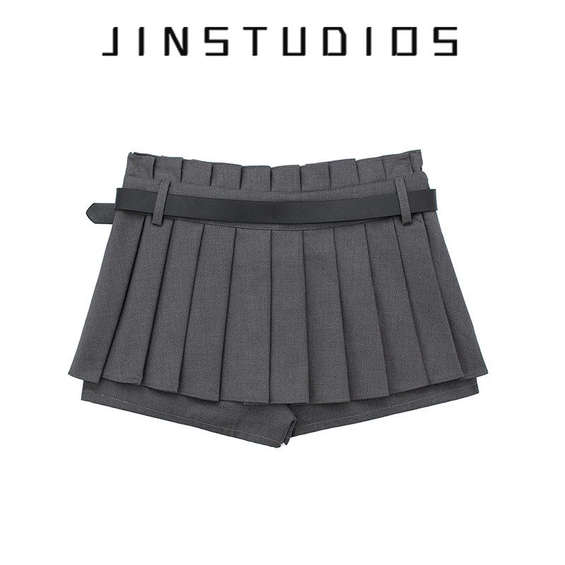 JIN自制夏美式 不对称腰带百褶短裙显瘦显腿长辣妹a字裙 校园风个性