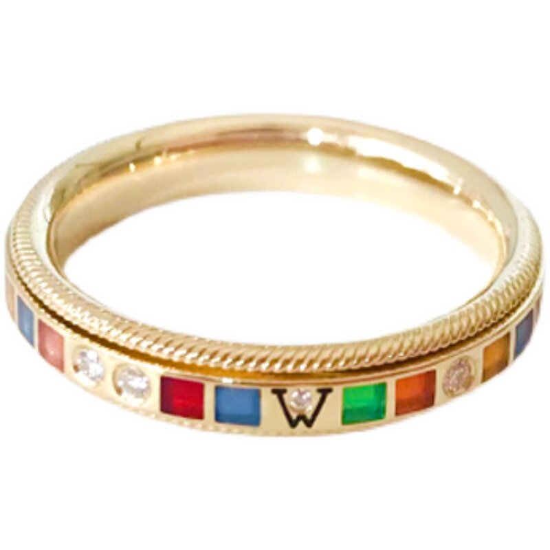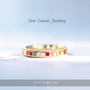华o洛芙精巧彩虹珐琅彩戒指旋转转动指环德国冷珐琅首饰珠宝定制