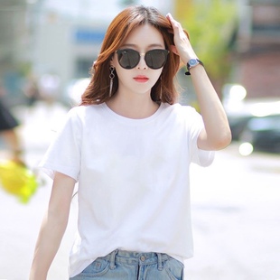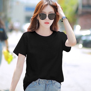 t恤女宽松ins洋气减龄显瘦上衣夏季 2025新款 正肩纯棉圆领纯色短袖