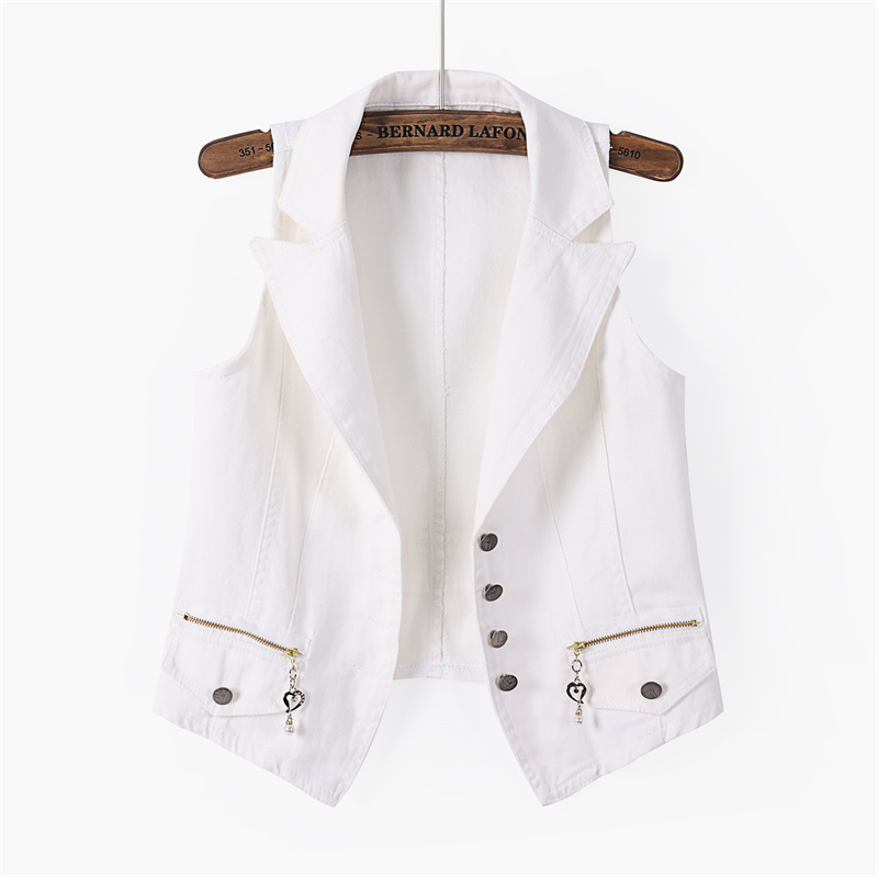修身 韩版 西装 领短款 牛仔马甲背心马夹外套坎肩上衣夏 女装 无袖 夏装