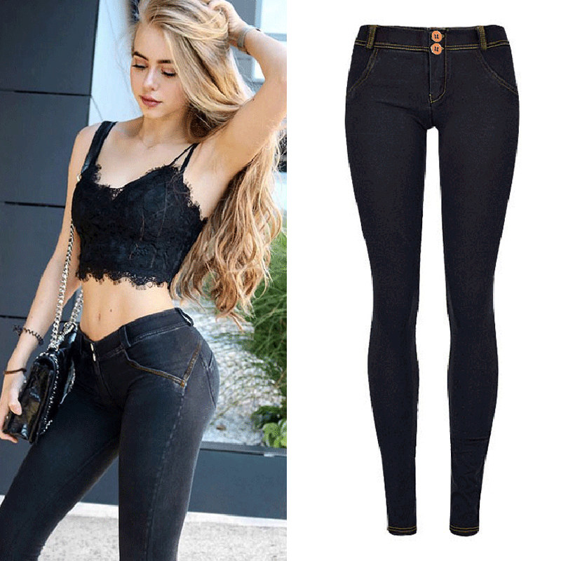 外穿弹力紧身小脚裤 女低腰性感翘臀长裤 子 蜜桃臀软牛仔裤 网红同款
