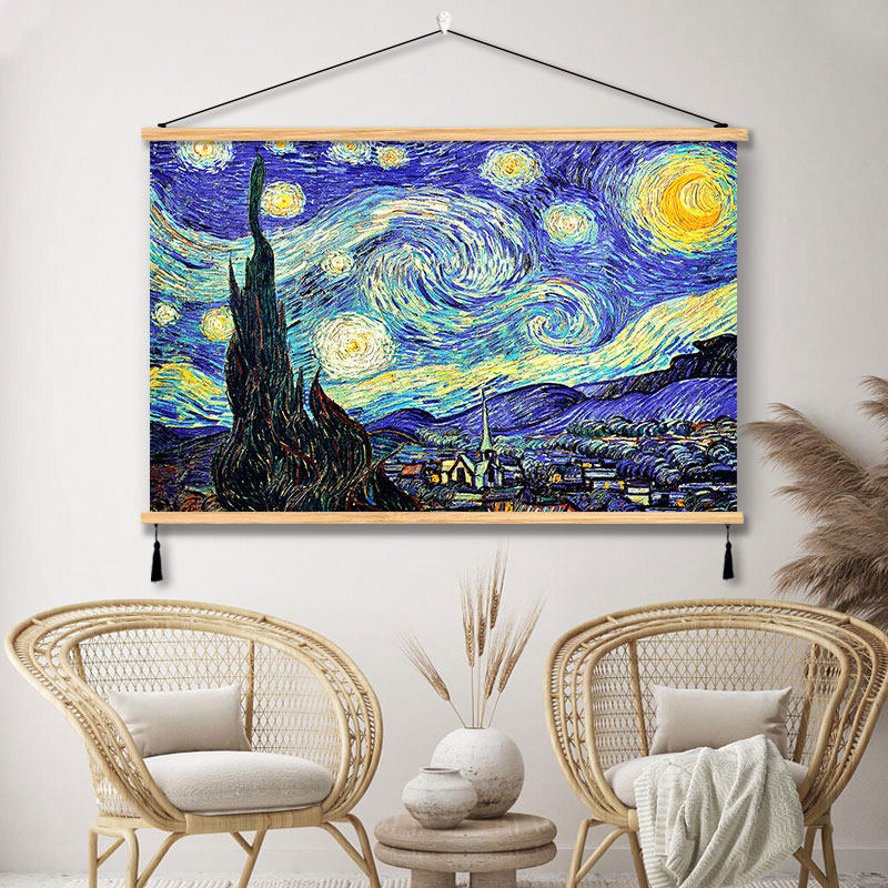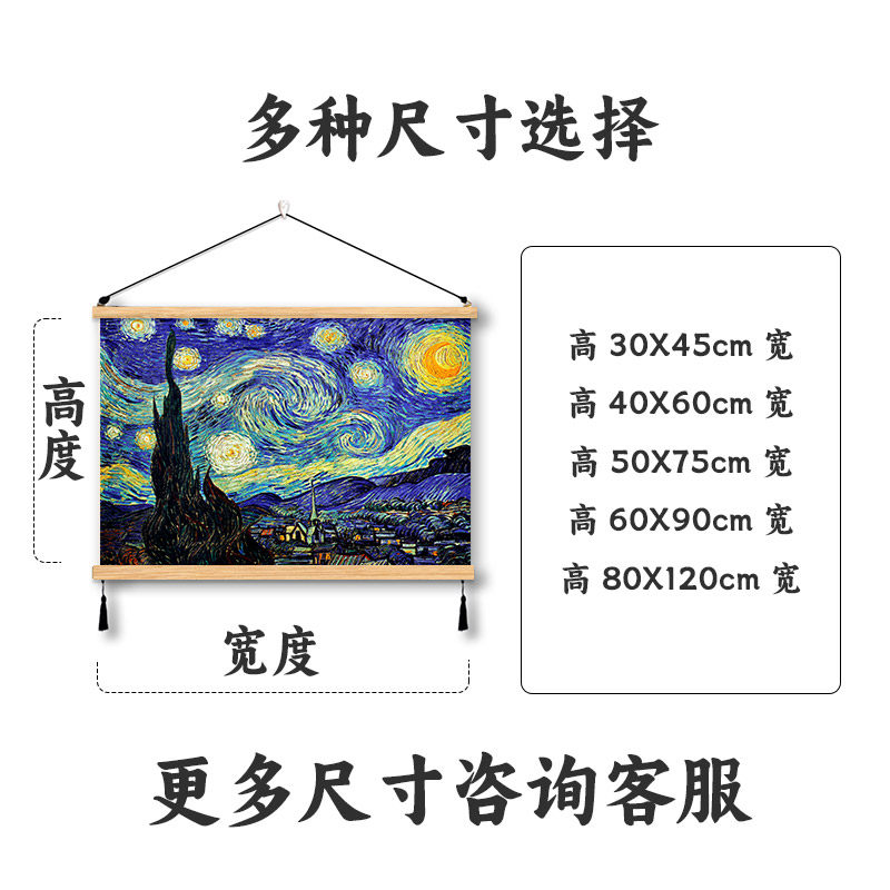 梵高油画装 饰画名家艺术墙布艺挂画客厅房间免打孔餐厅卧室遮挡画