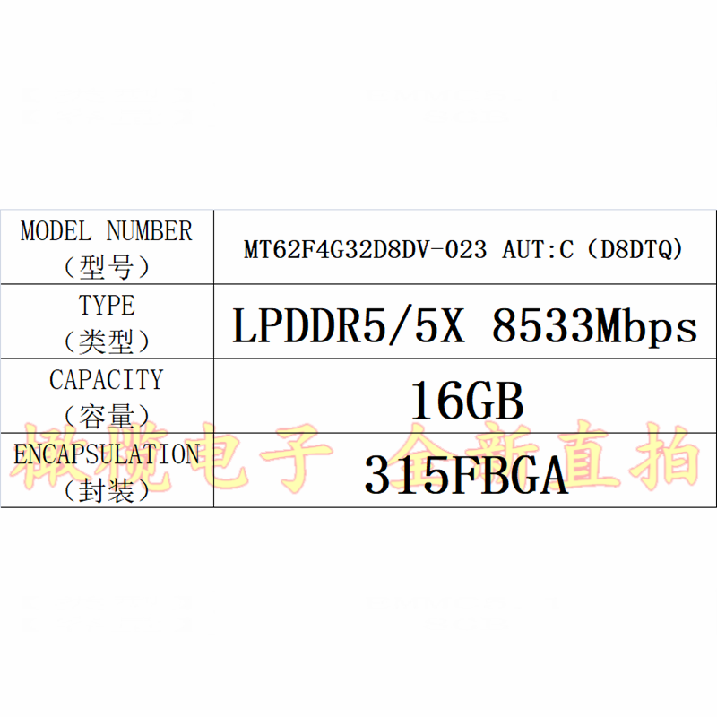 D8DTQ LPDDR5 MT62F4G32D8DV 8533Mbps AUT 16GB315FBGA 023