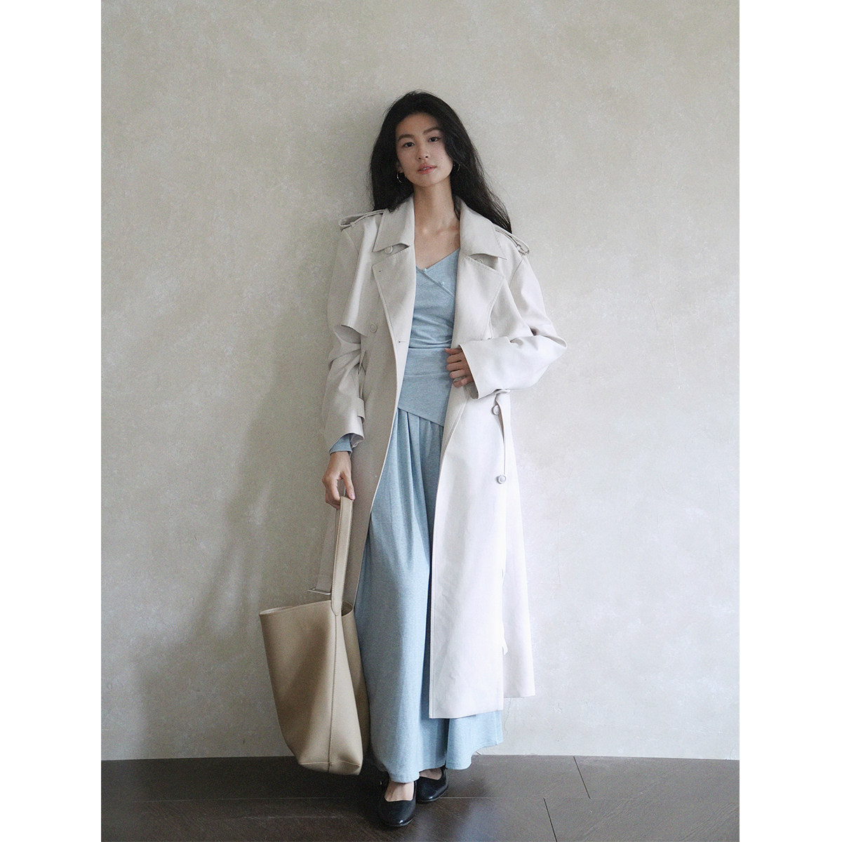 莱赛尔复古经典 罗兰初雪 廓形翻领风衣大衣 现货7.5折 贰羊设计