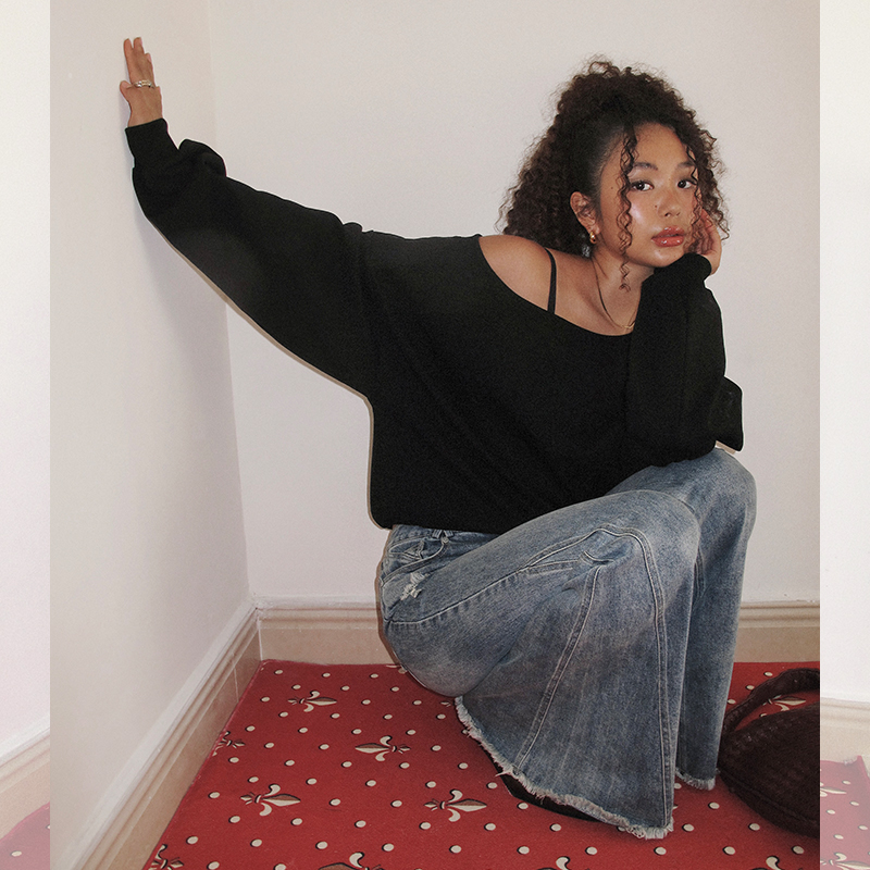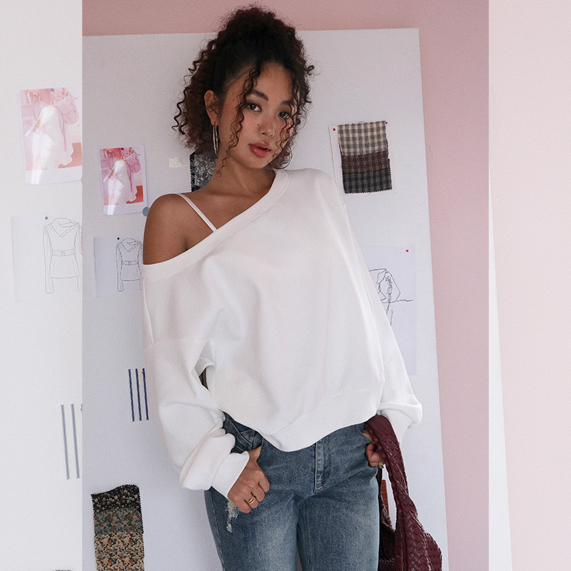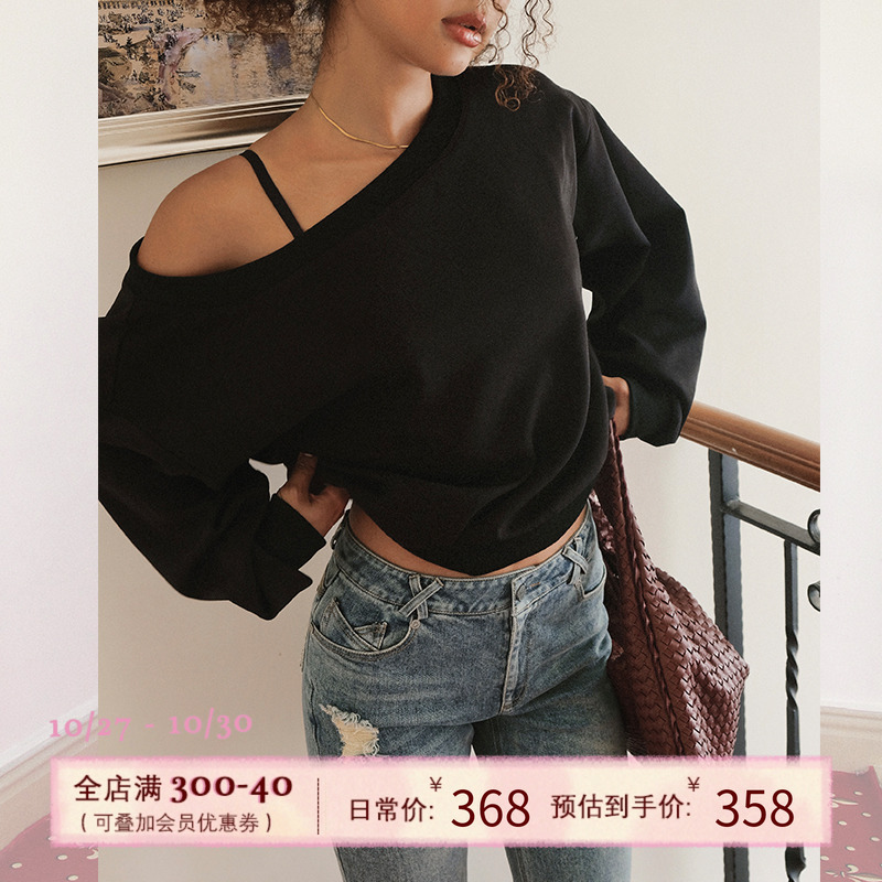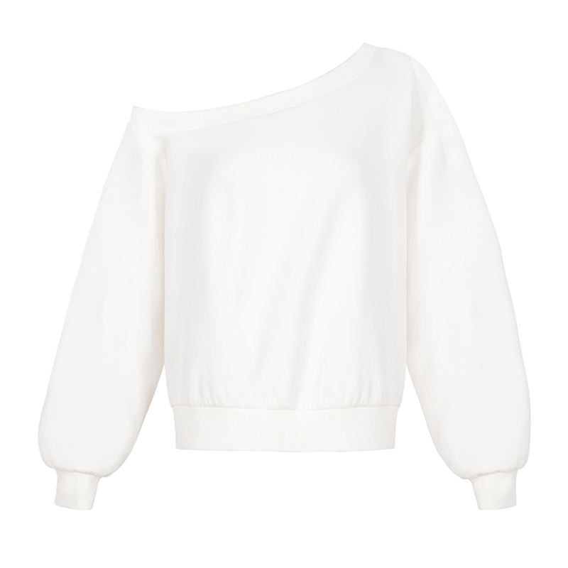 ITSNIKAR美式 露肩上衣 宽松白色套头斜肩卫衣女秋冬休闲设计感长袖